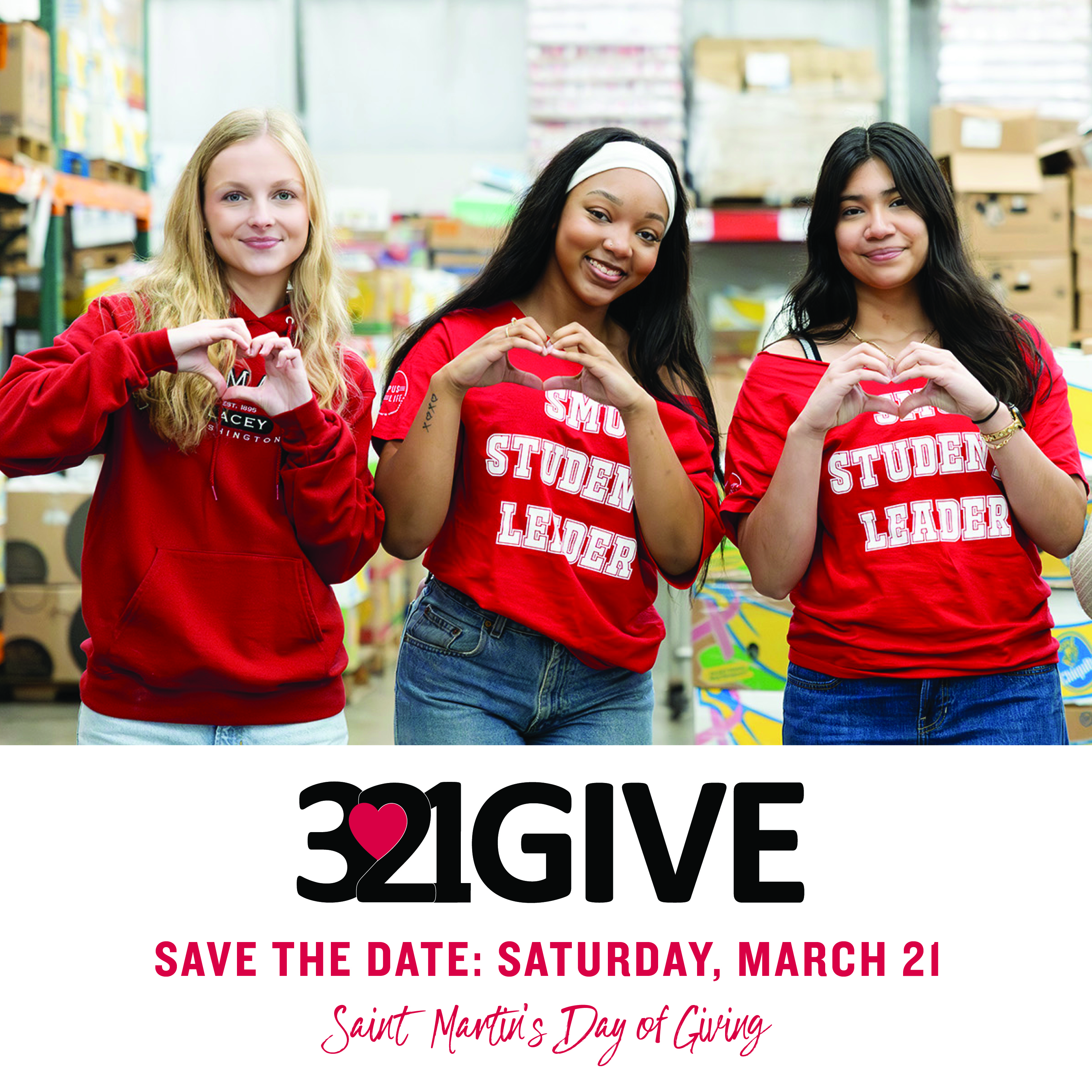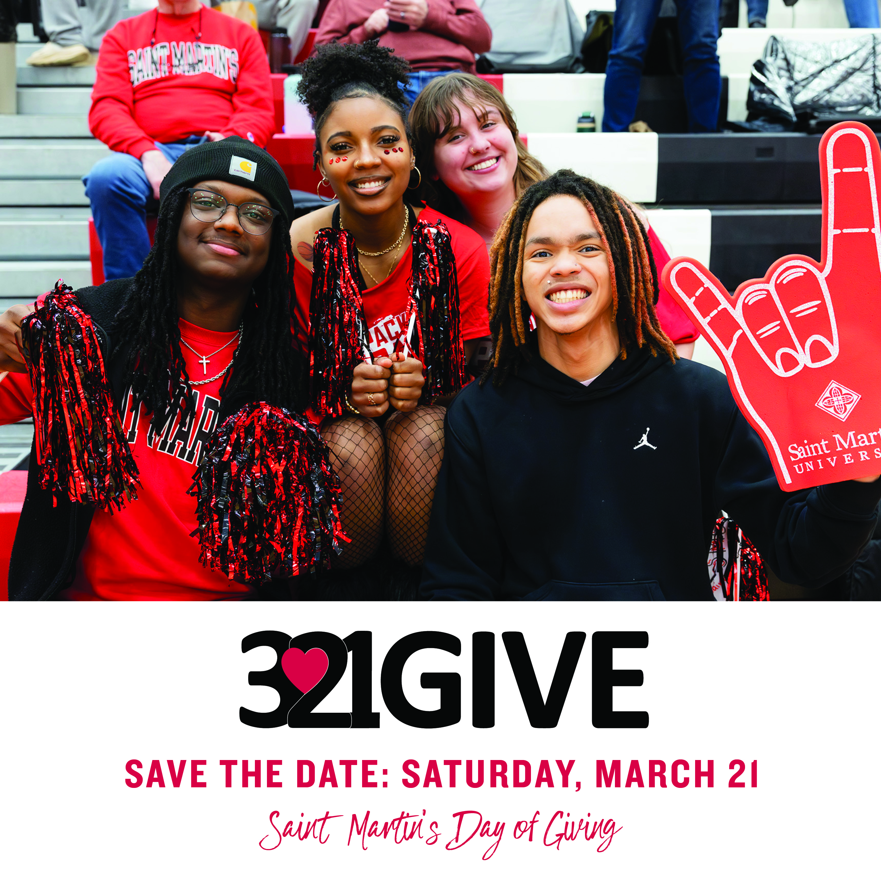 3.21GIVE is Saint Martin's annual day of giving held on March 21 (Saint Benedict’s Day)! This is a day for you and all of the Saint Martin’s community to make a difference in the lives of current and future students by supporting an area of the University that means the most to you. Supporting Saint Martin's makes a profound impact on students and the services that nurture them – scholarships, athletics, the Fund for Saint Martin's and many more.